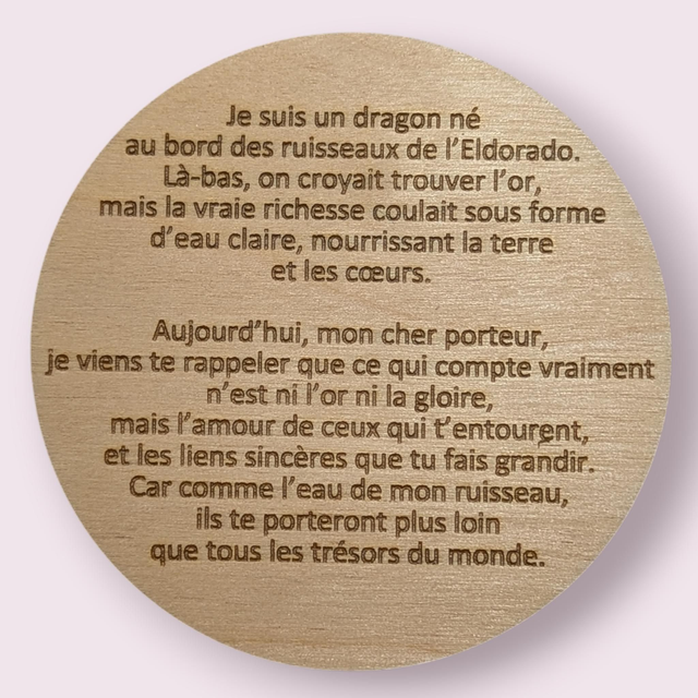 Chaque dragon porte un message personnalisé ( visible dans les photos du produit ) et écoute patiemment les paroles de son porteur,