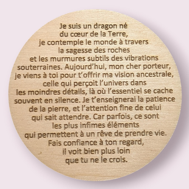 Chaque dragon porte un message personnalisé ( visible dans les photos du produit ) et écoute patiemment les paroles de son porteur,