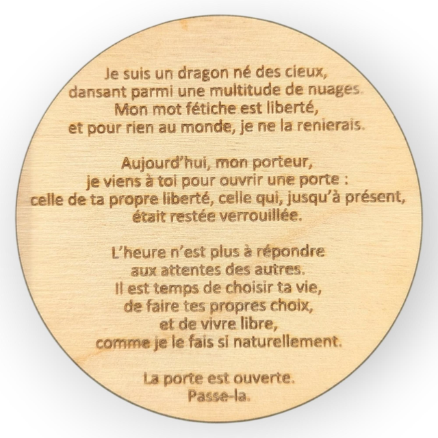 Chaque dragon porte un message personnalisé ( visible dans les photos du produit ) et écoute patiemment les paroles de son porteur,