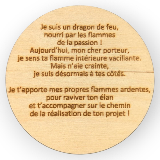 Chaque dragon porte un message personnalisé ( visible dans les photos du produit ) et écoute patiemment les paroles de son porteur,