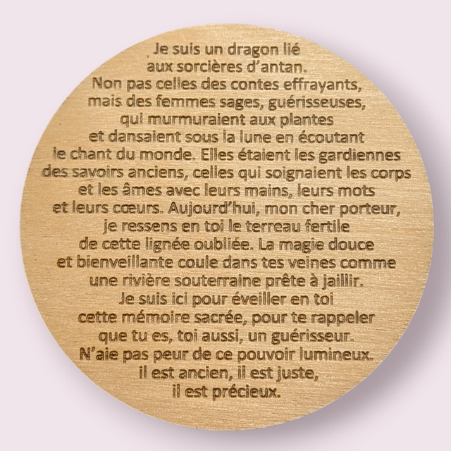 Chaque dragon porte un message personnalisé ( visible dans les photos du produit ) et écoute patiemment les paroles de son porteur,