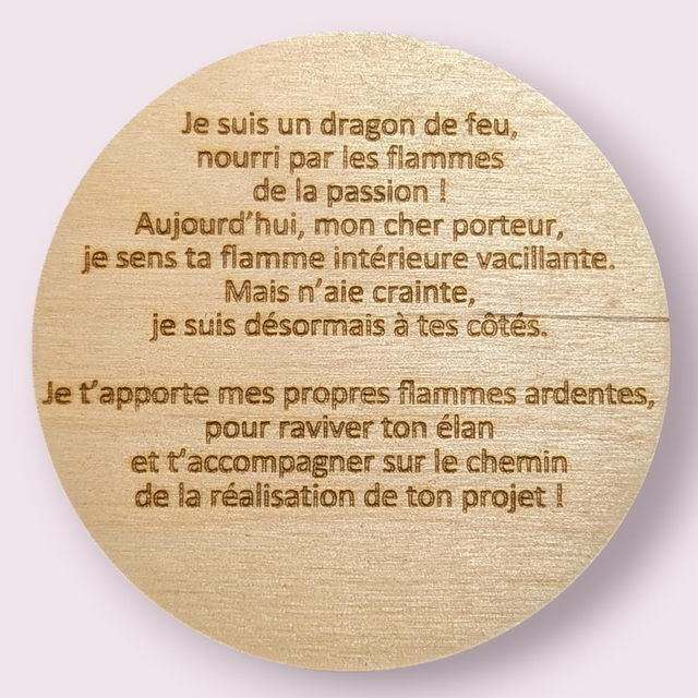 Chaque dragon porte un message personnalisé ( visible dans les photos du produit ) et écoute patiemment les paroles de son porteur,